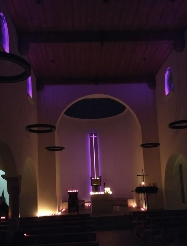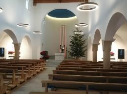 Die Beleuchtung der Hängedecke des Chorraums sowie des Eingangs sind ebenfalls von der LED IllumiNation GmbH produziert worden.
